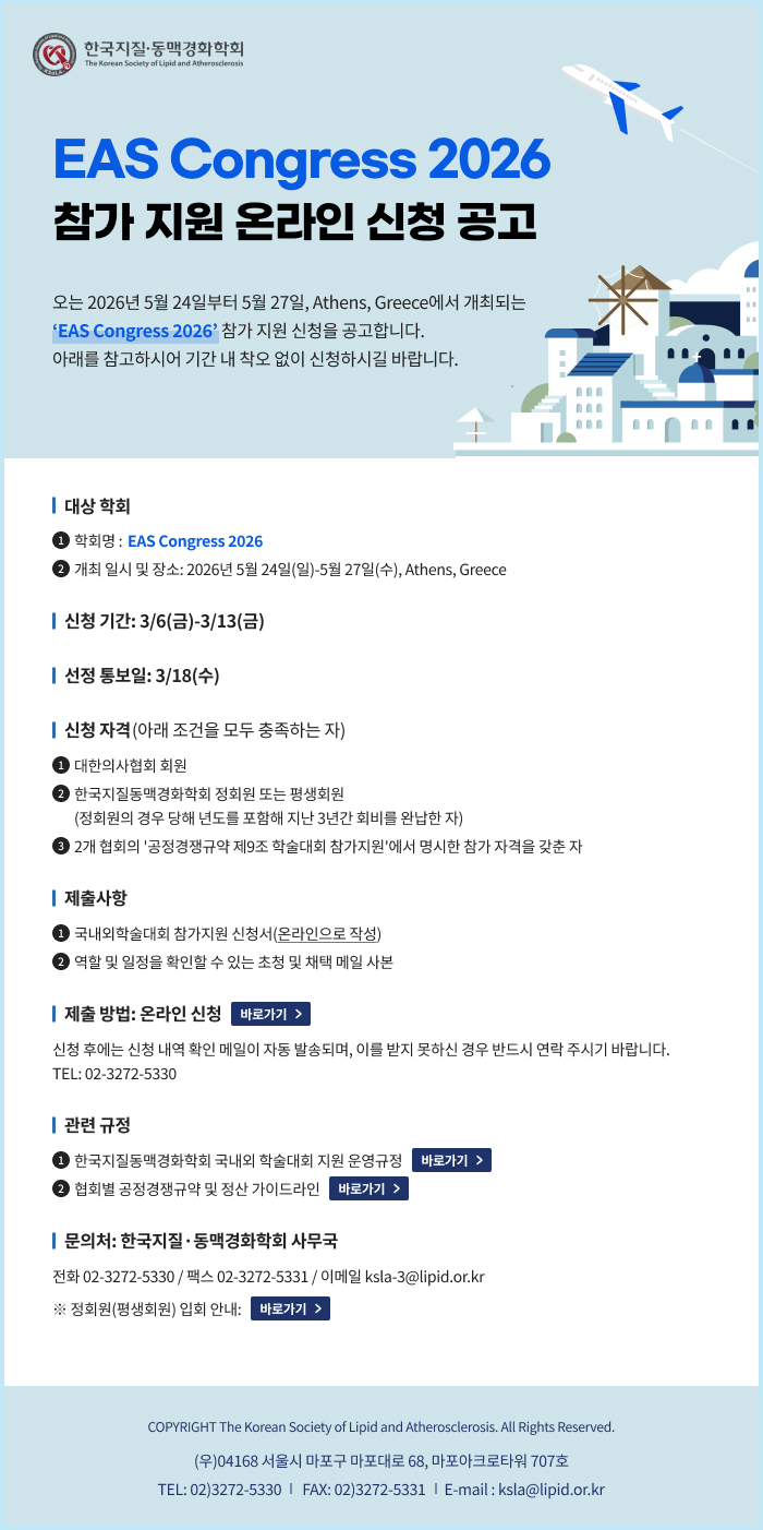 한국지질·동맥경화학회 국내외 학술대회 참가지원
