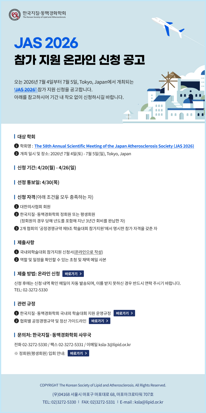 한국지질·동맥경화학회 국내외 학술대회 참가지원