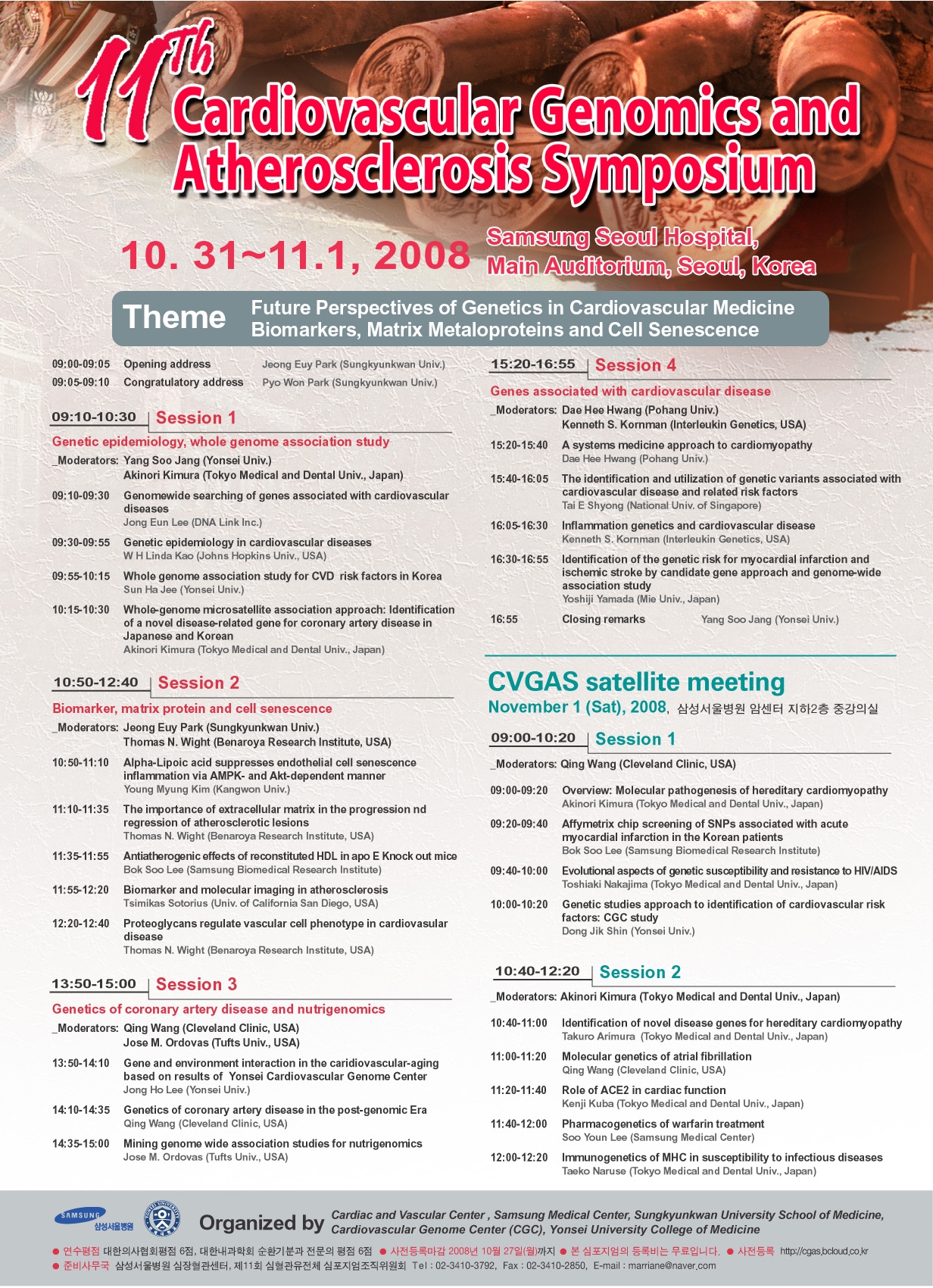 금년으로 11회째 맞는 Cardiovascular Genomics and Atherosclerosis Symposium에 초청장을 보내게 된 것을 기쁘게 생각합니다.