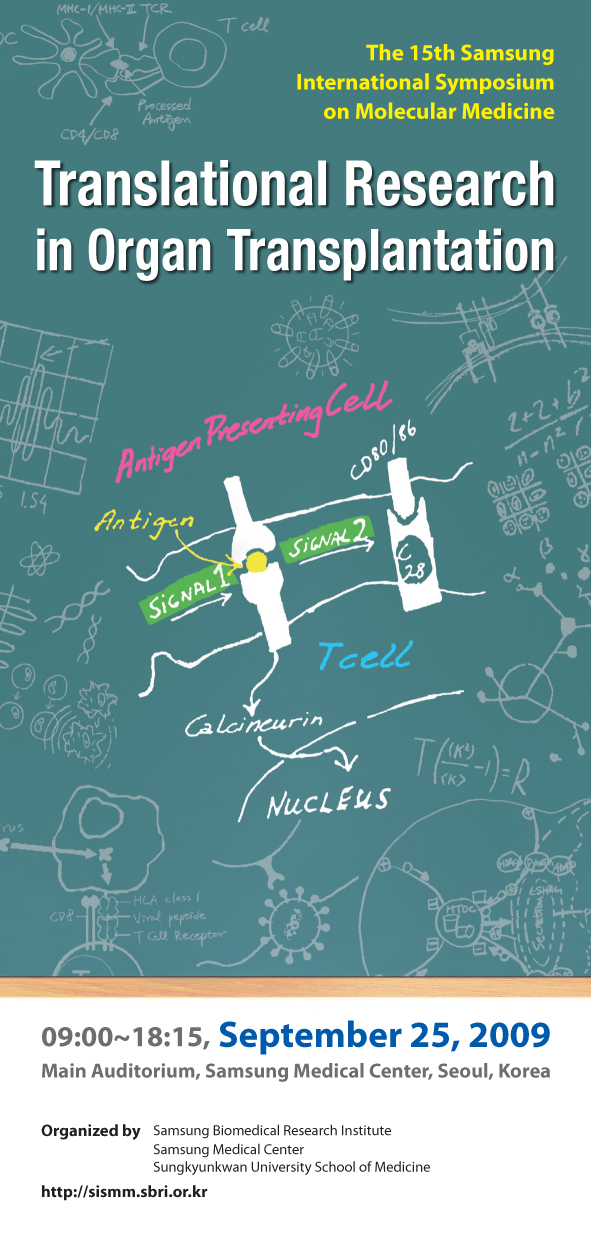 삼성생명과학연구소에서 “Translational Research in Organ Transplantation"를 주제로 세계적인 석학들을 모시고 제15회 삼성분자의학국제심포지엄을 다음과 같이 개최합니다.