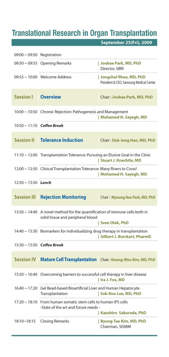 - 주 제 : Translational Research in Organ Transplantation