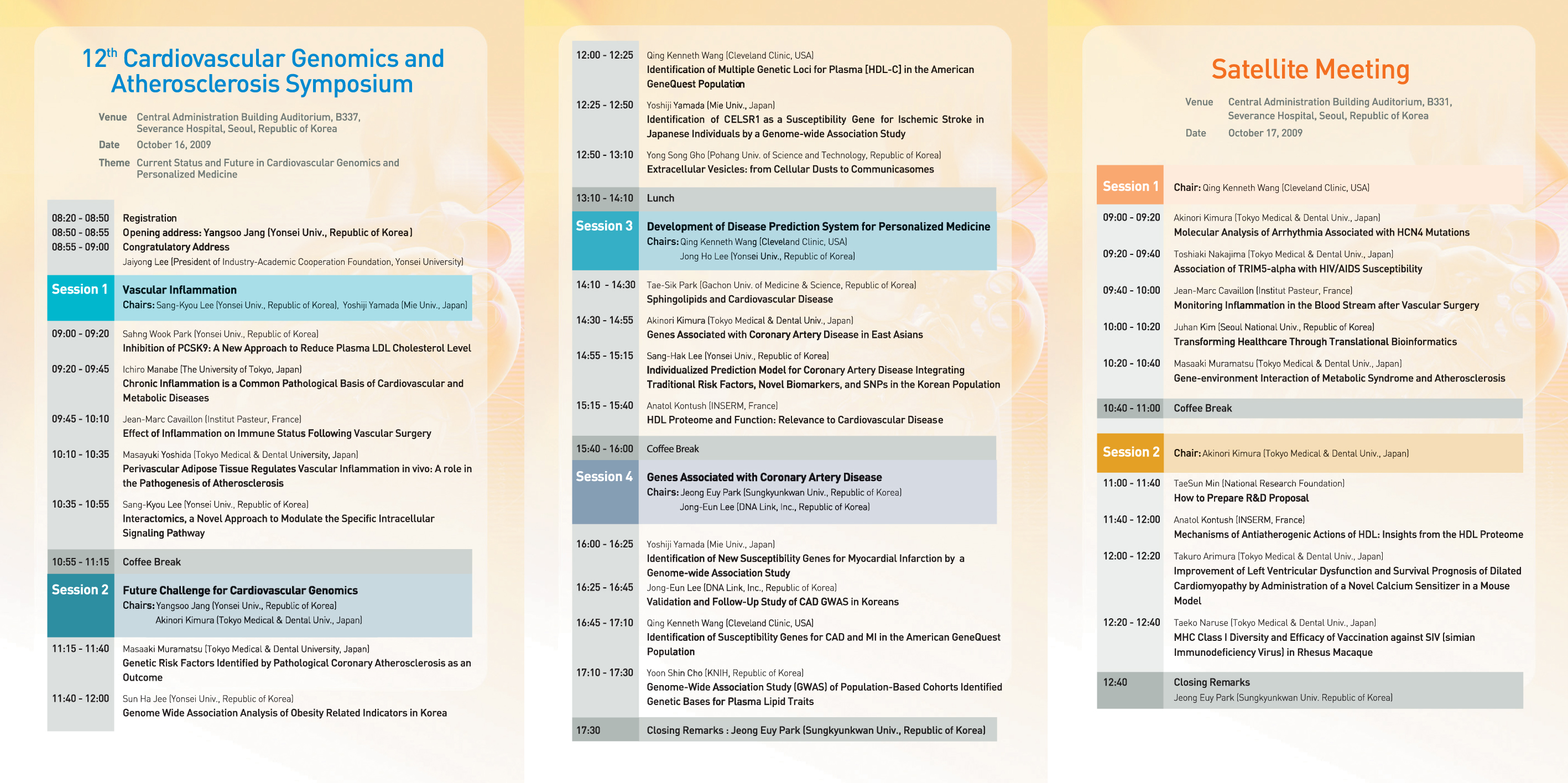 [학회 관련 심포지엄 안내] The 12th Cardiovascular Genomics and Atherosclerosis Symposium(연세대학교의료원)