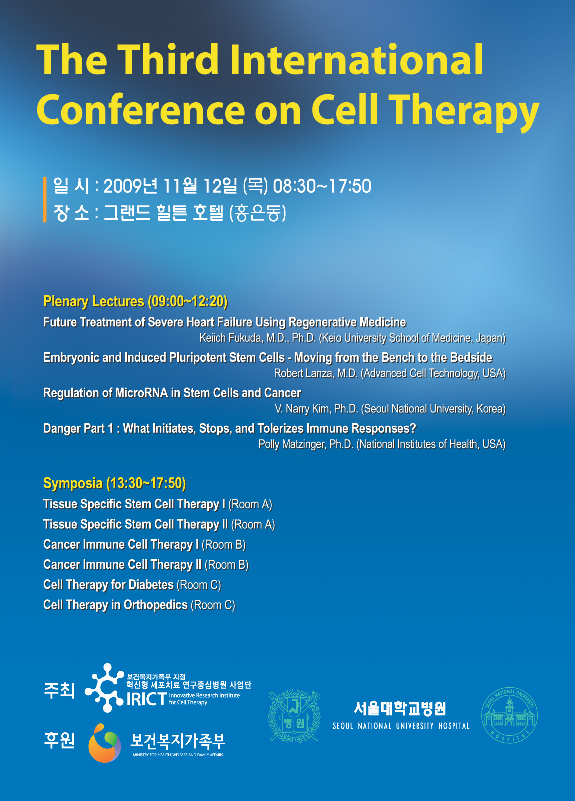 [학회 관련 국제 컨퍼런스 안내]The Third International Conference on Cell Therapy 개최(서울대학교병원 혁신형 세포치료 연?