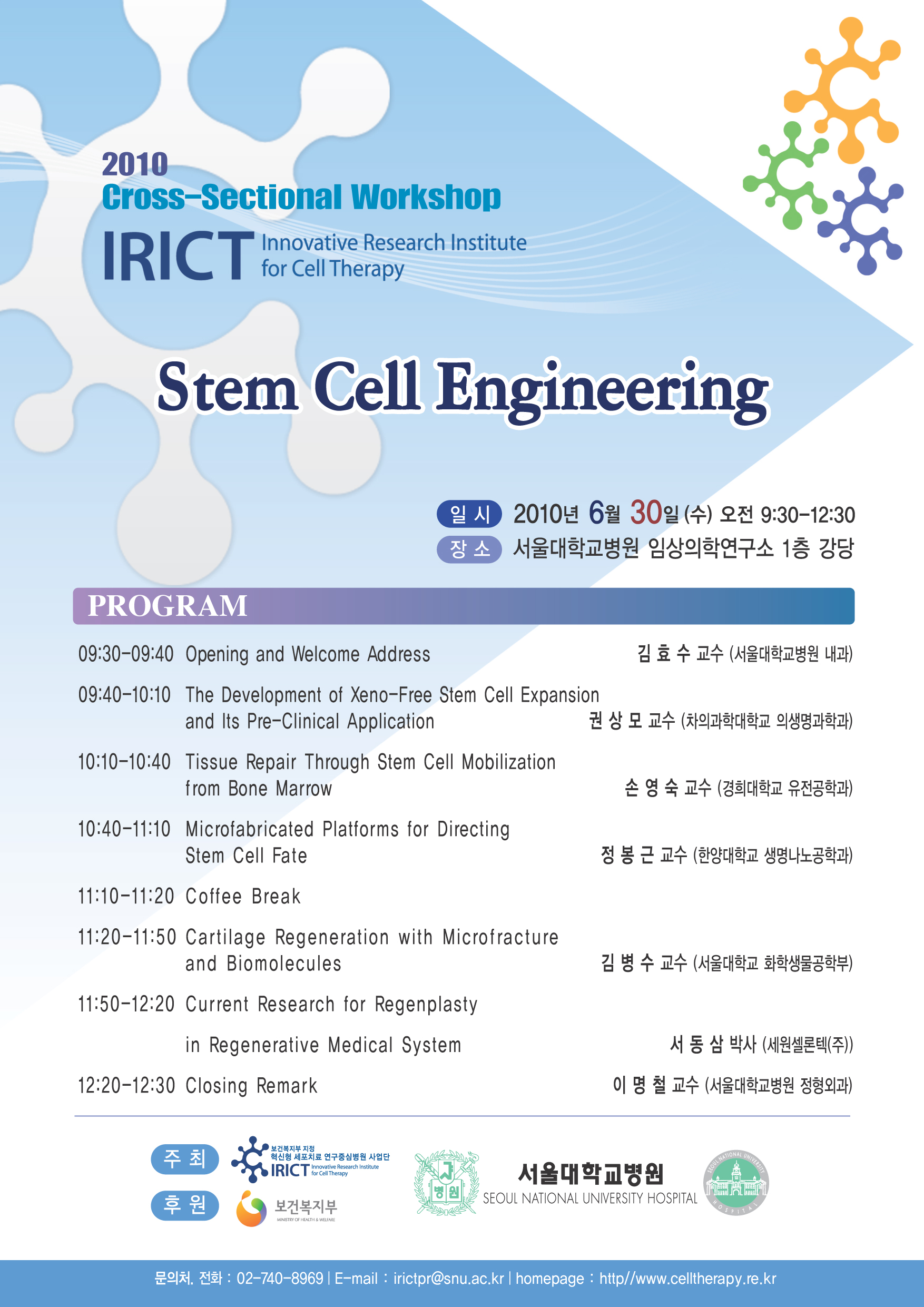 [서울대학교병원 IRICT] Stem Cell Engineering Workshop 개최안내
