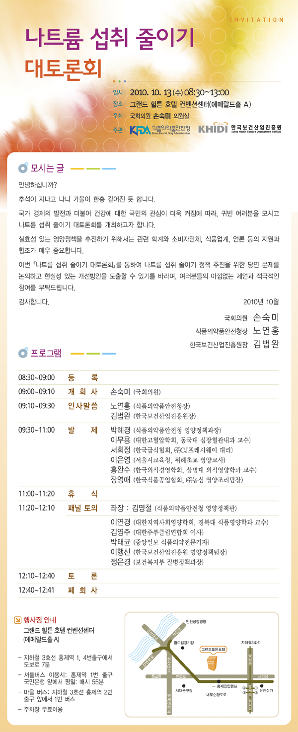 [학회 관련 토론회 안내] 나트륨 섭취 줄이기 대토론회(식품의약품안전청)