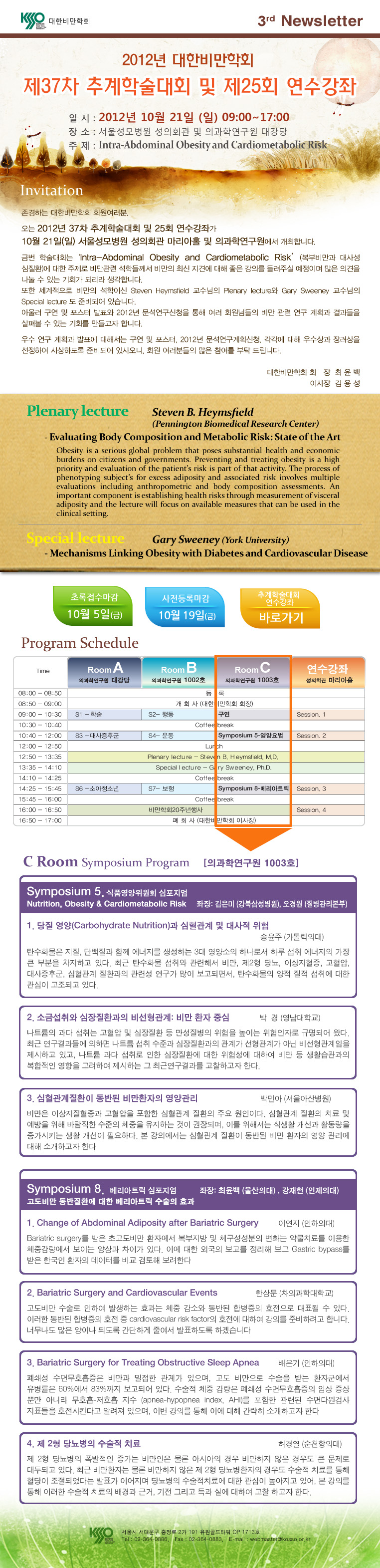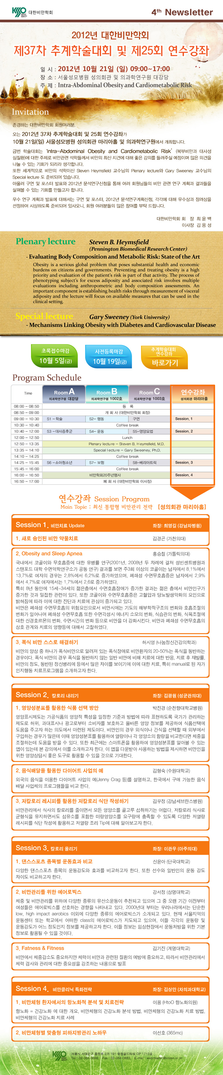 대한비만학회 2012년도 37차 추계학술대회 및 25회 연수강좌
