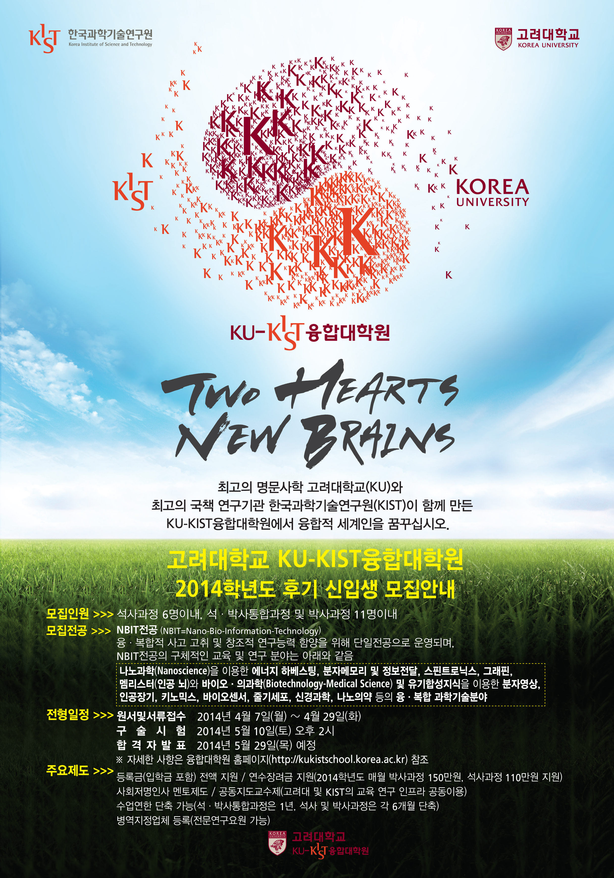 [학회 관련 대학원 안내] 고려대학교 KU-KIST 융합대학원 2014학년도 후기 신입생 모집
