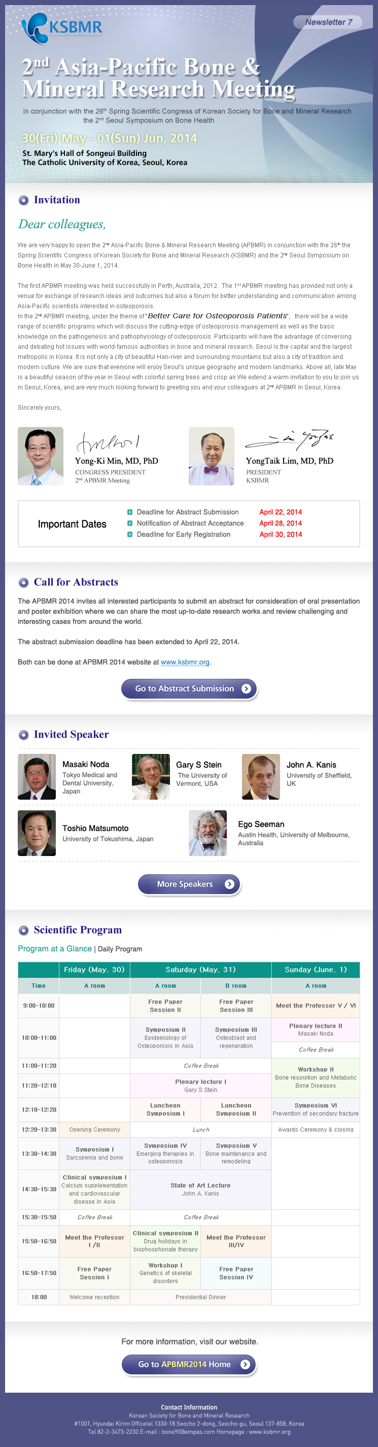 [학회 관련 학술대회 안내] 2nd Asia-Pacific Bone & Mineral Research Meeting(대한골대사학회)
