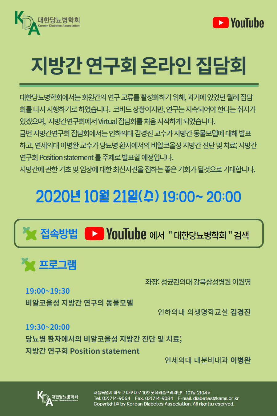 [유관학회 안내] 지방간 연구회 온라인 집담회 안내