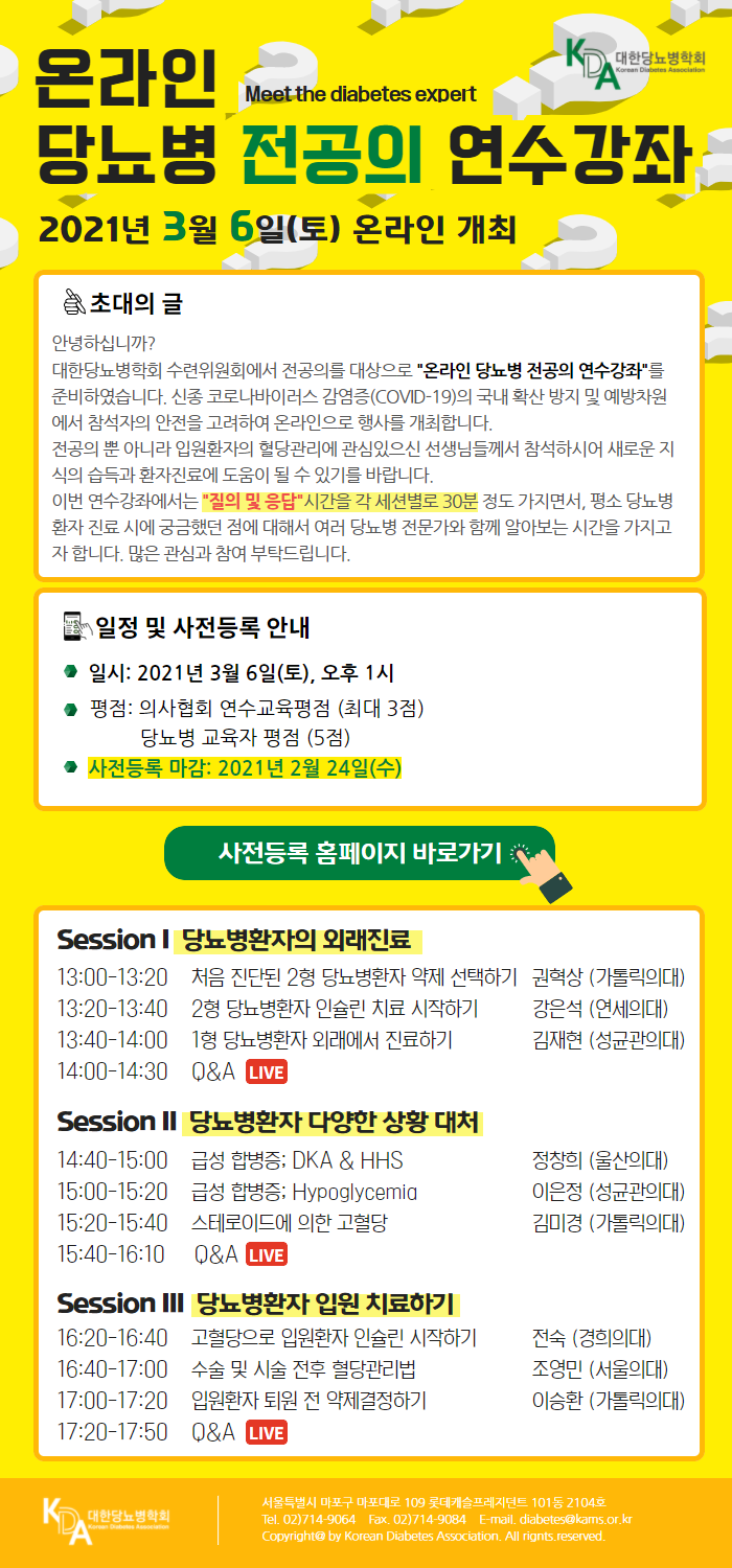 ➢ 사전등록 페이지: https://www.diabetes.or.kr/new_workshop/202114/