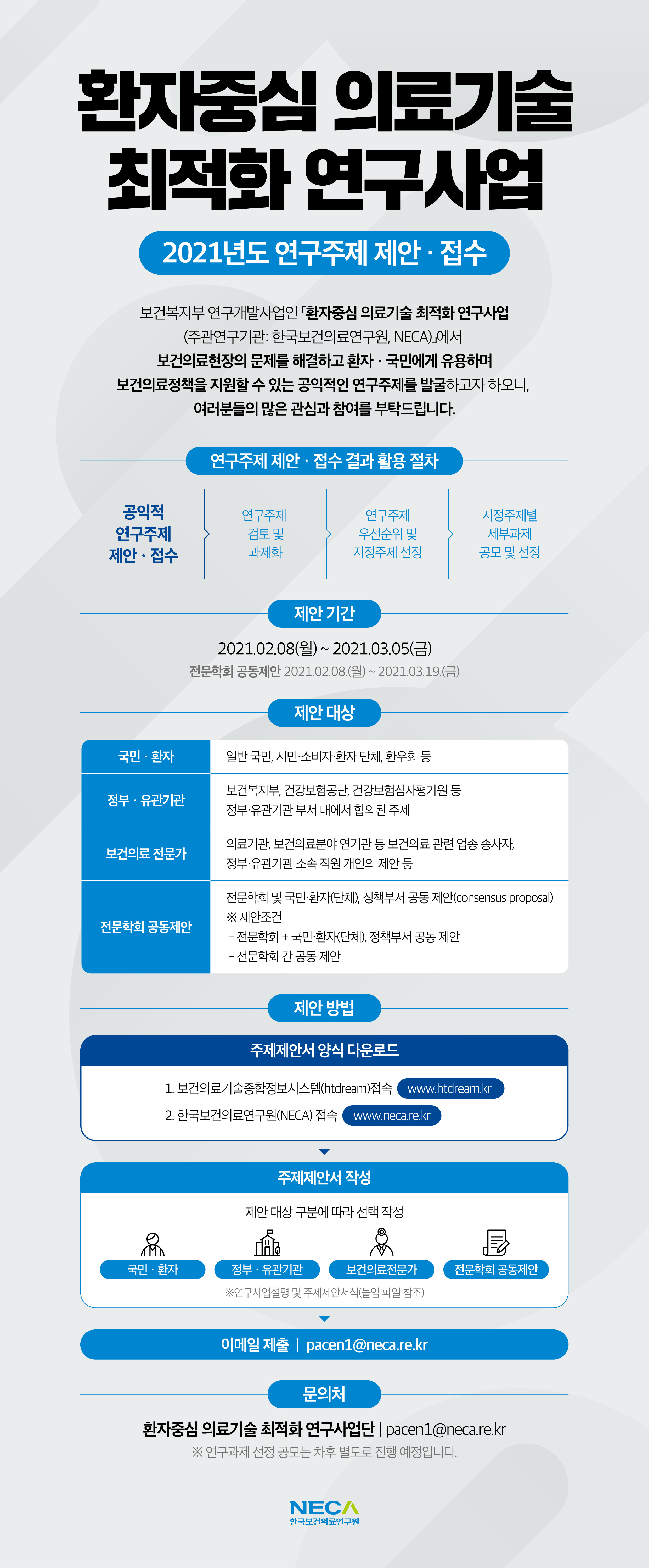 <2021년도 환자중심 의료기술 최적화 연구주제 제안 및 접수 안내>