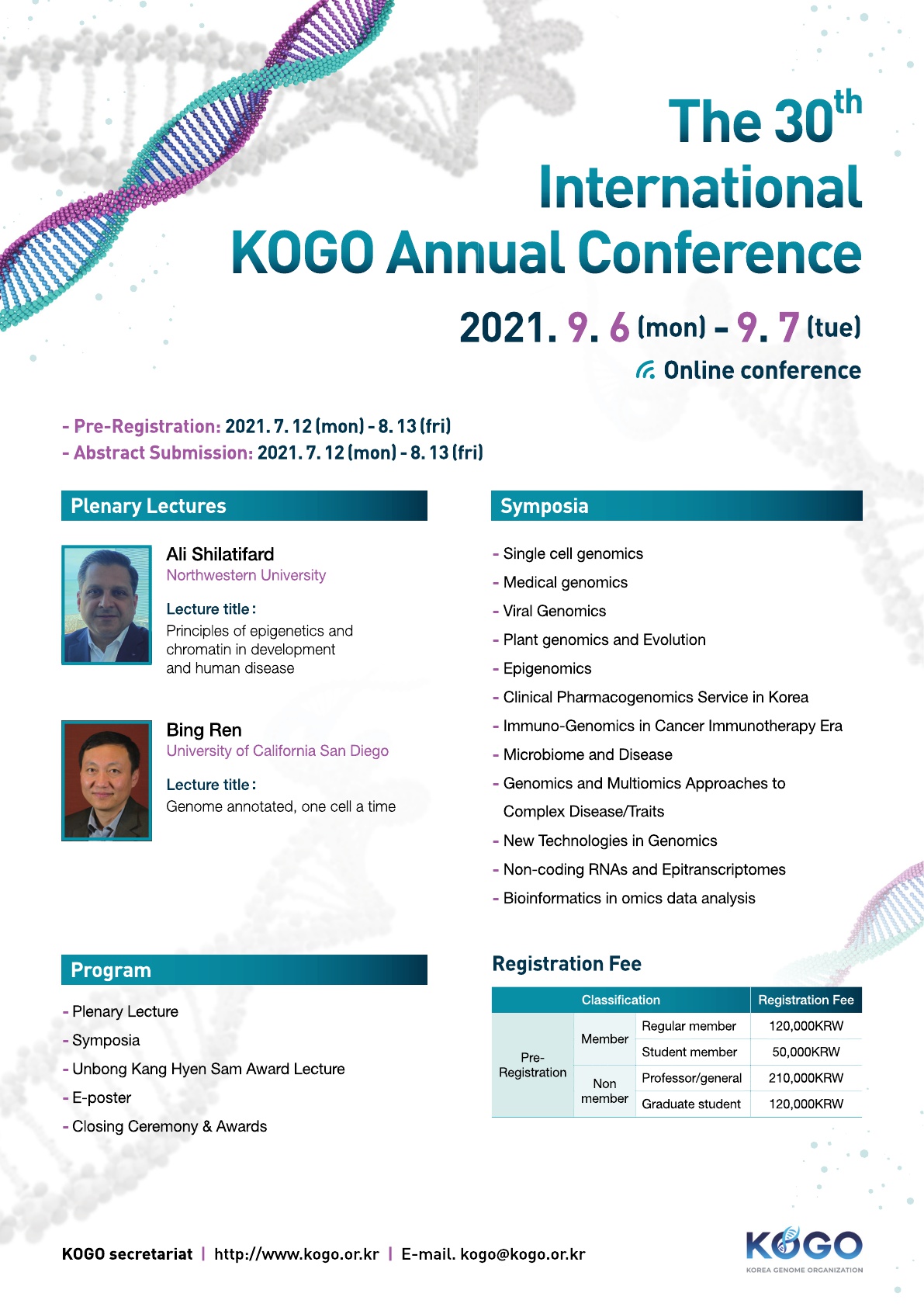 한국유전체학회에서 2021년 제30회 정기 국제학술대회를 개최합니다.