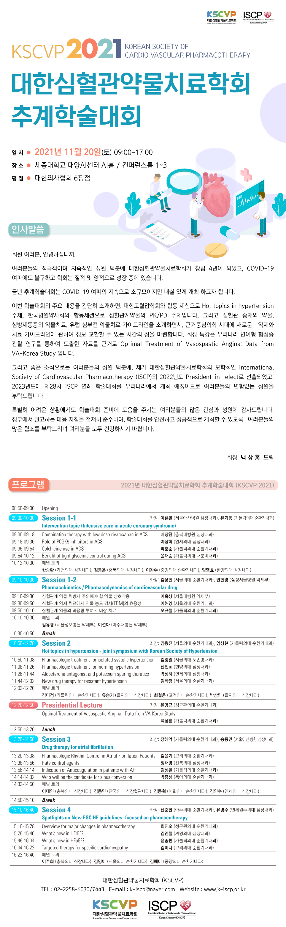 대한심혈관약물치료학회에서 추계학술대회를 개최합니다.