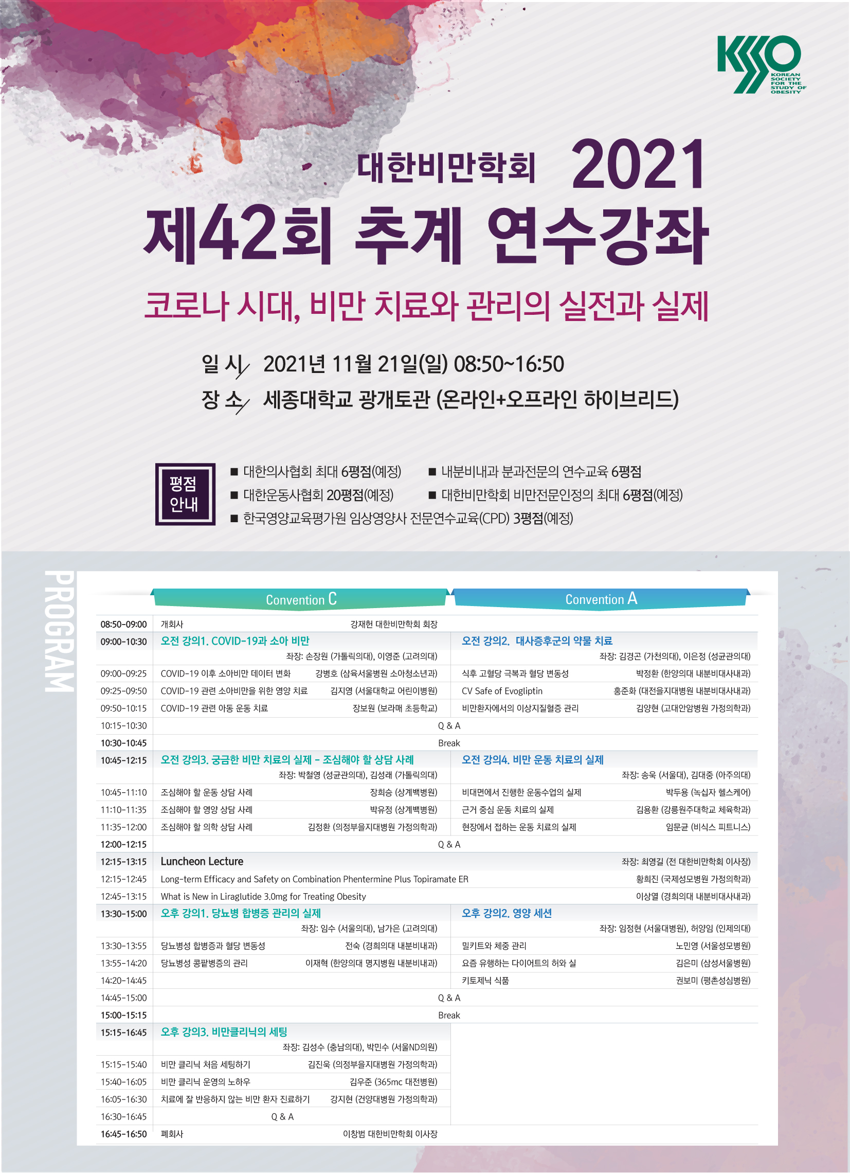 대한비만학회에서 제42회 추계연수강좌를 개최합니다