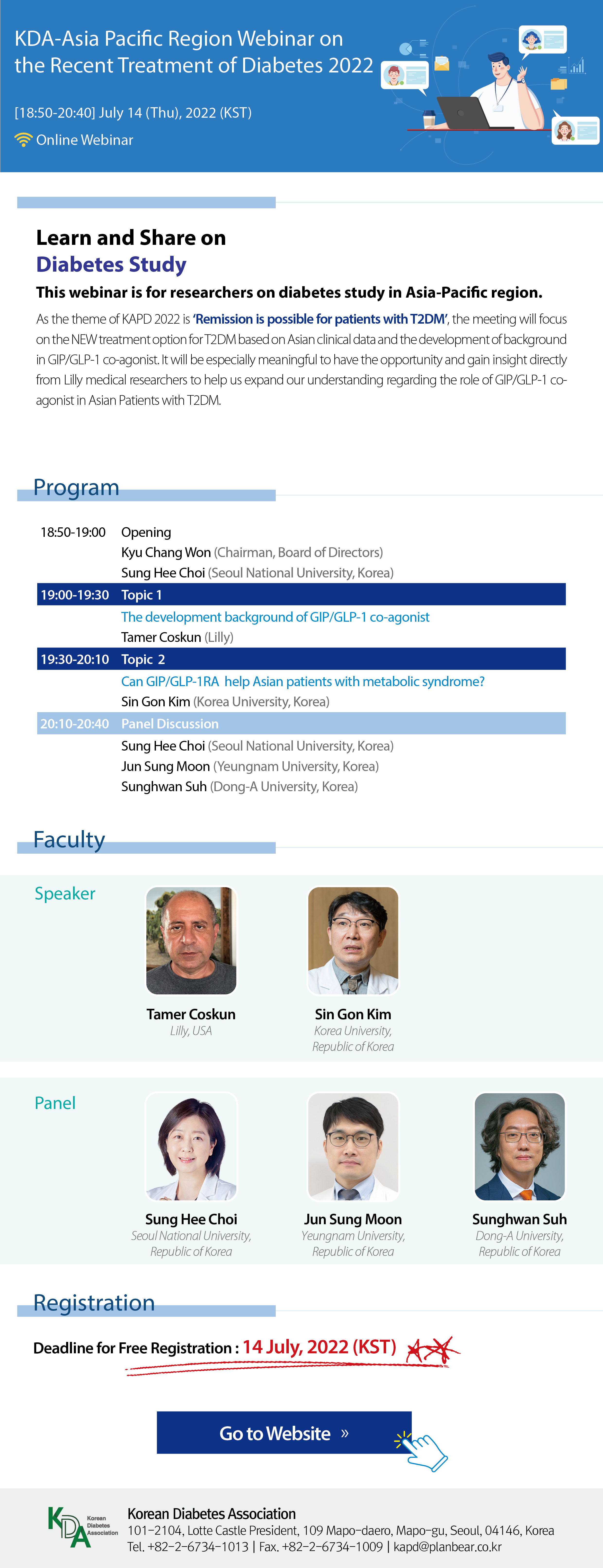 대한당뇨병학회에서 KDA-Asia Pacific Region Webinar on the Recent Treatment of Diabetes 2022를 온라인 웨비나 형태로 개최합니다.