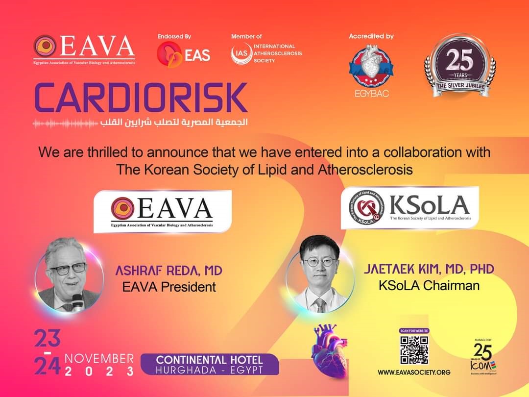 본 학회와 MOU를 맺은 EAVA(Egyptian Association of Vascular biology and Atherosclerosis) 에서 11월 23-24일 Egypt의 Hurghada에서 Cardio risk를 개최합니다.