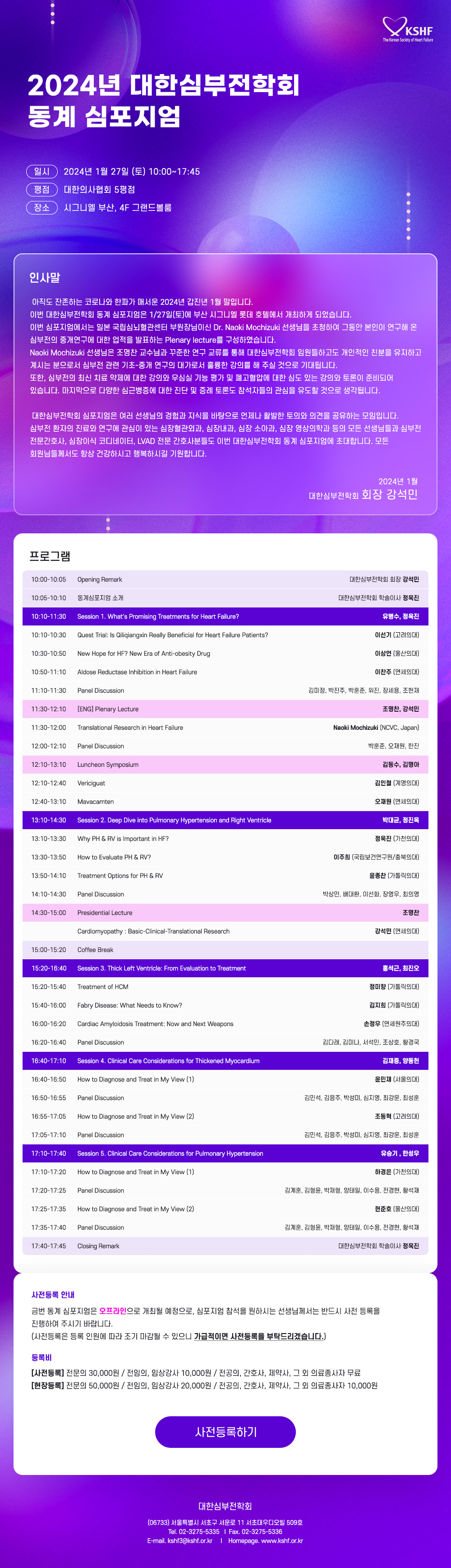 대한심부전학회에서 2024 동계 심포지엄을 개최합니다.