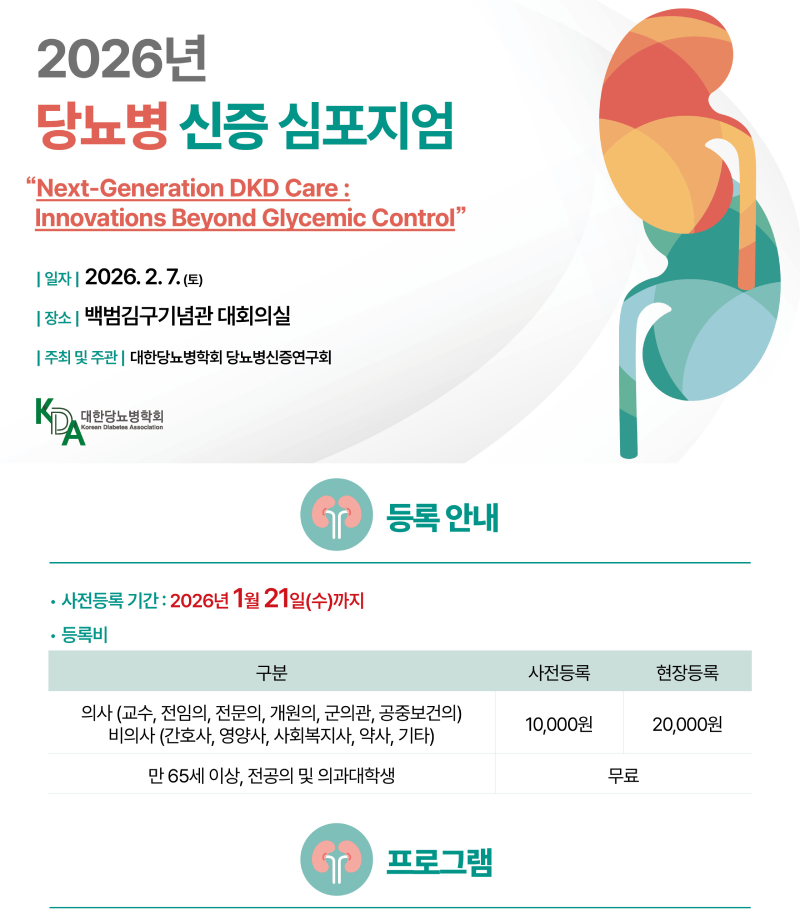 [연관학회] 대한당뇨병학회 2026년 당뇨병 신증 심포지엄 개최 안내