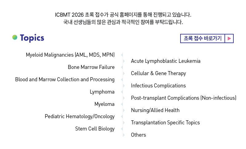[연관학회] 대한조혈모세포이식학회 국제학술대회 (ICBMT 2026) 개최 안내