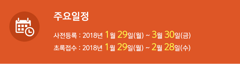 - 사전등록: 2018년 1월 29일(월) ~ 2018년 3월 30일(금)