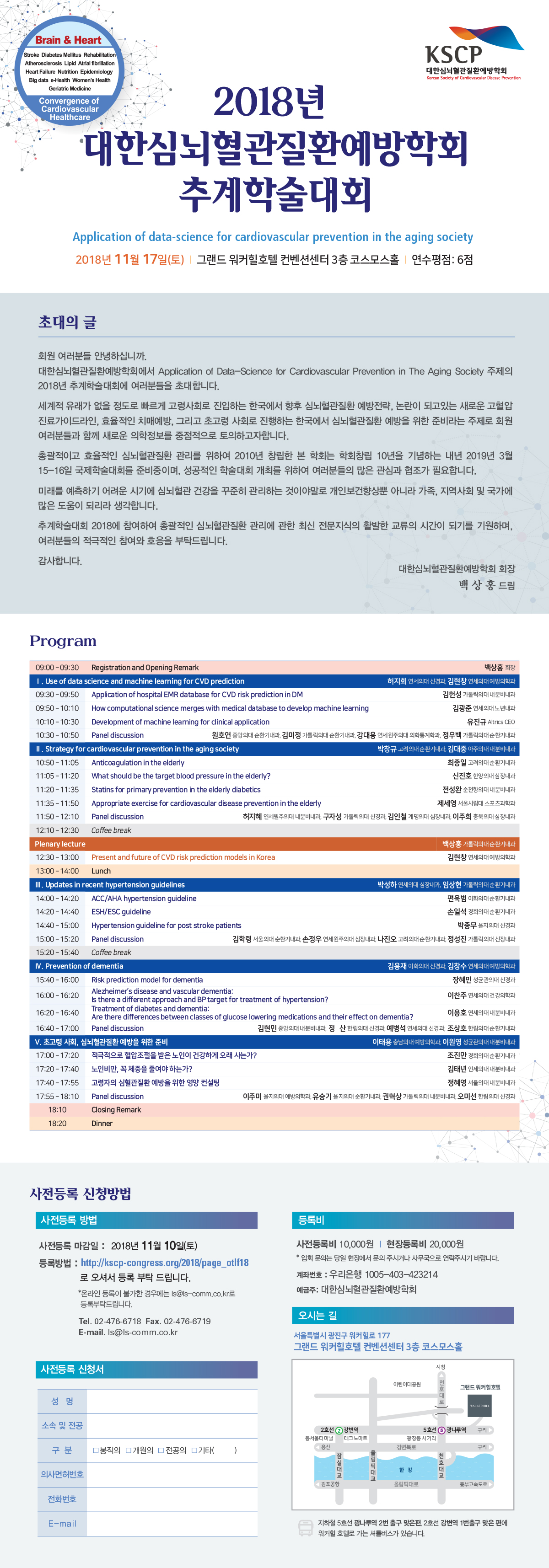 2018년도 대한심뇌혈관질환예방학회 추계학술대회를 다음과 같이 개최합니다.