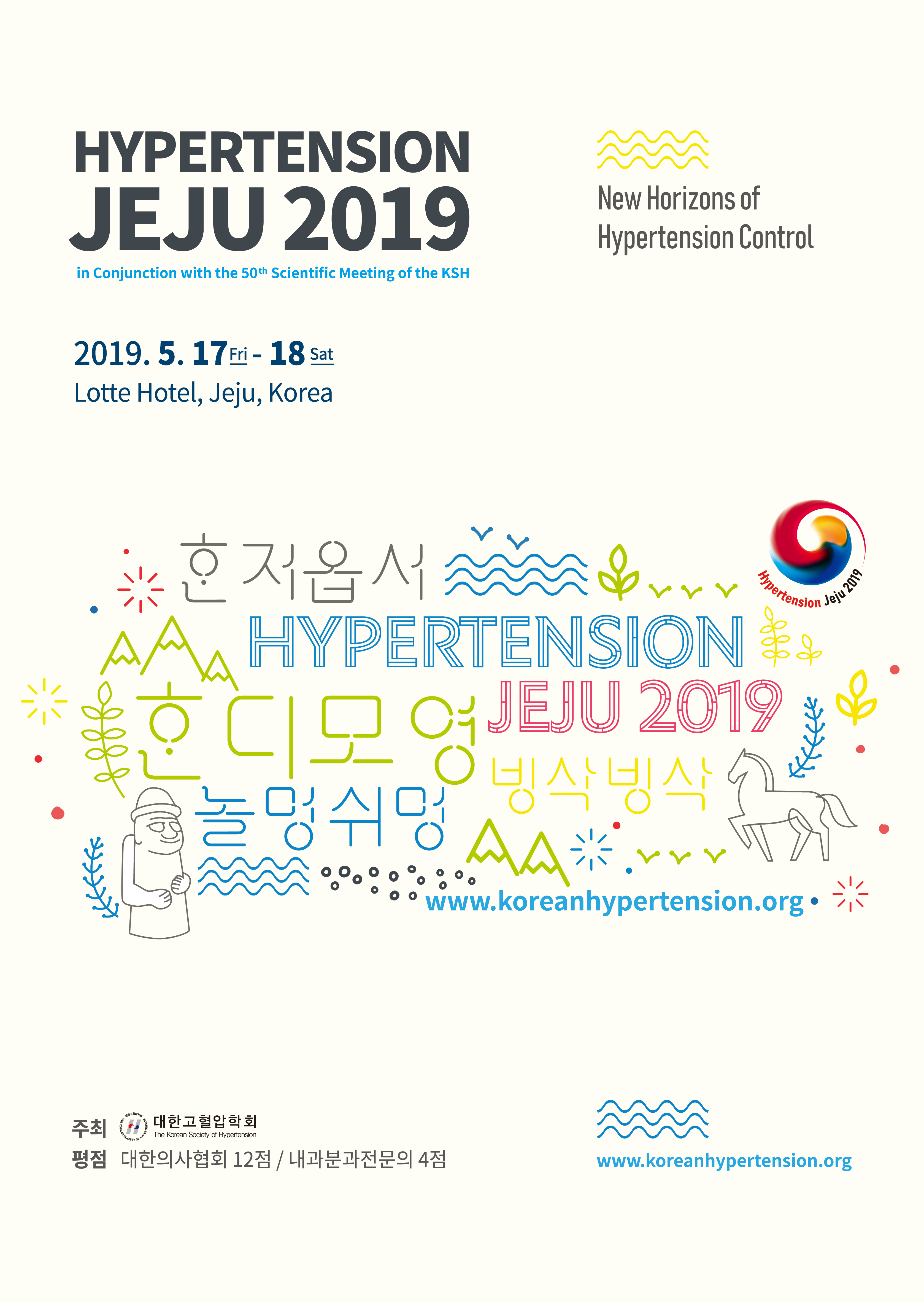 오는 5월 17일(금) - 18일(토) 제주, 롯데호텔(중문)에서 『Hypertension JEJU 2019, 대한고혈압학회 제50회 춘계국제학술대회』가 개최 예정입니다.