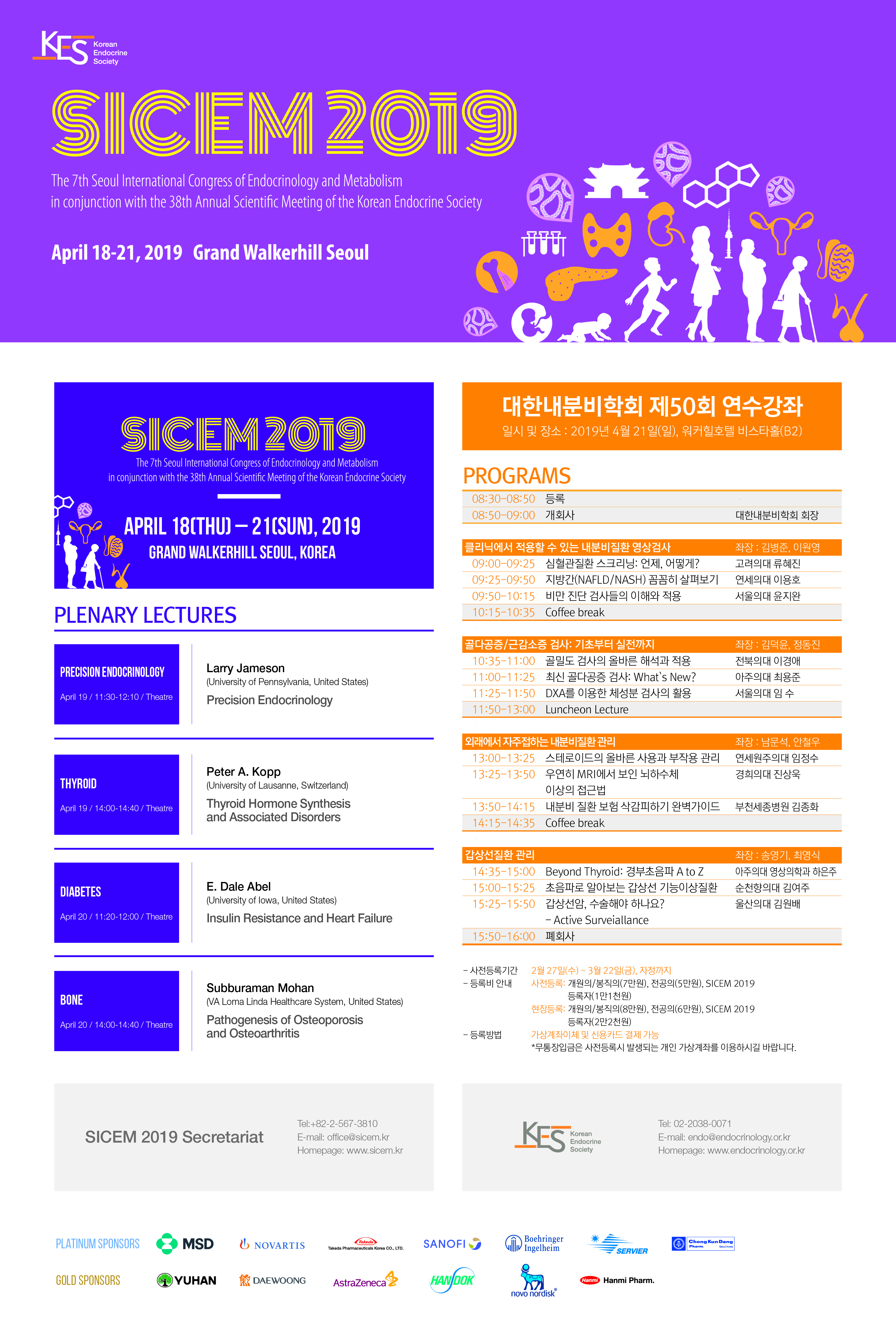 [유관학회 안내] 대한내분비학회 SICEM 2019 및 제50회 연수강좌(CME) 안내