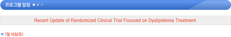 | 19:35~19:50 | ASSERT (Efficacy and Safety of a Novel Oral Inducer of Apolipoprotein A-I Synthesis in Statin-Treated Patients With Stable Coronary Artery Disease) | 조상호 (한림의대) |